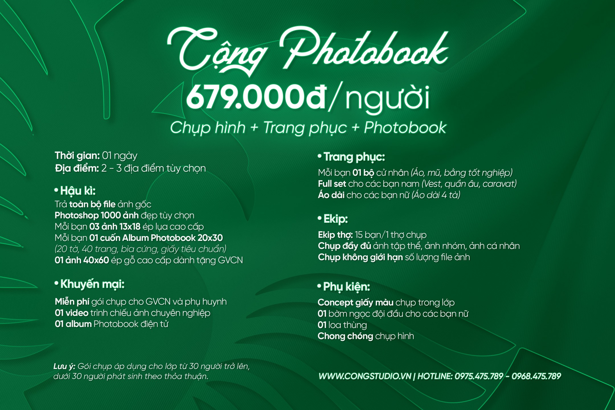 Hãy liên hệ Cộng Studio ngay để được tư vấn miễn phí! Hotline: 0975.475.789 / 0968.475.789 | Fanpage: Chụp Ảnh Kỷ Yếu – Cộng Studio